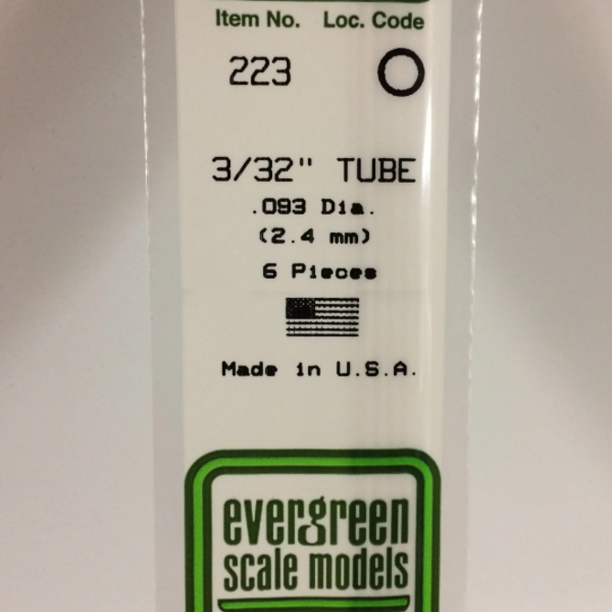 Evergreen Scale Models Evergreen 223 - .093" (2.4MM) X 14" OPAQUE WHITE POLYSTYRENE TUBING (6) Pack
