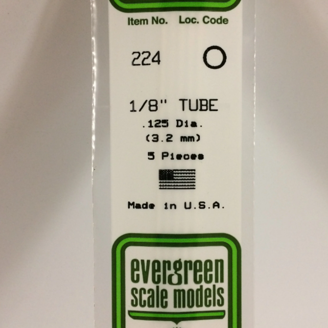 Evergreen Scale Models Evergreen 224 - .125" (3.2MM) X 14" OPAQUE WHITE POLYSTYRENE TUBING (5) Pack