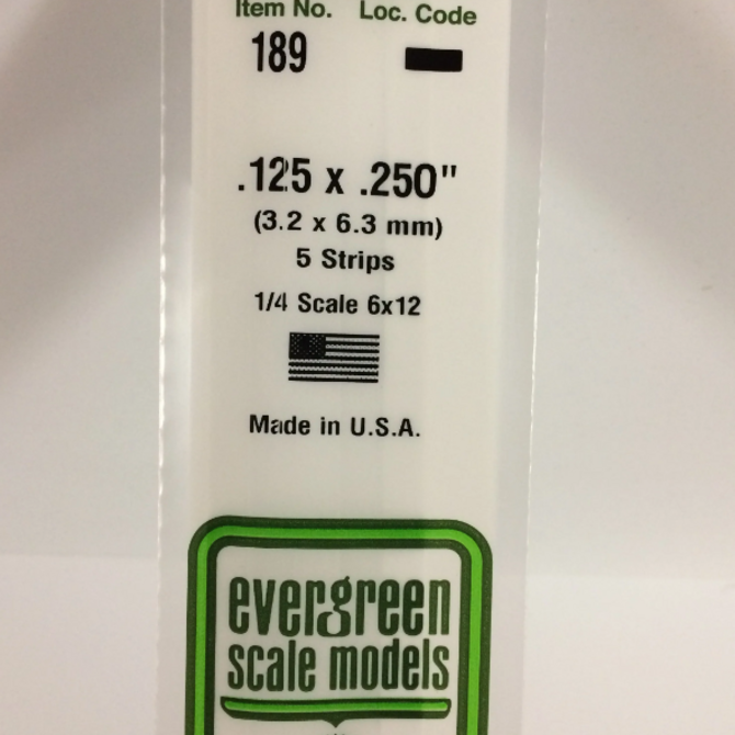 Evergreen Scale Models Evergreen 189 - .125" X .250" X 14" OPAQUE WHITE POLYSTYRENE STRIP (5) Pack