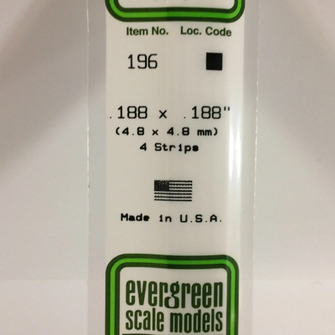 Evergreen Scale Models Evergreen 196 - .188" X .188" X 14" OPAQUE WHITE POLYSTYRENE STRIP (4) Pack