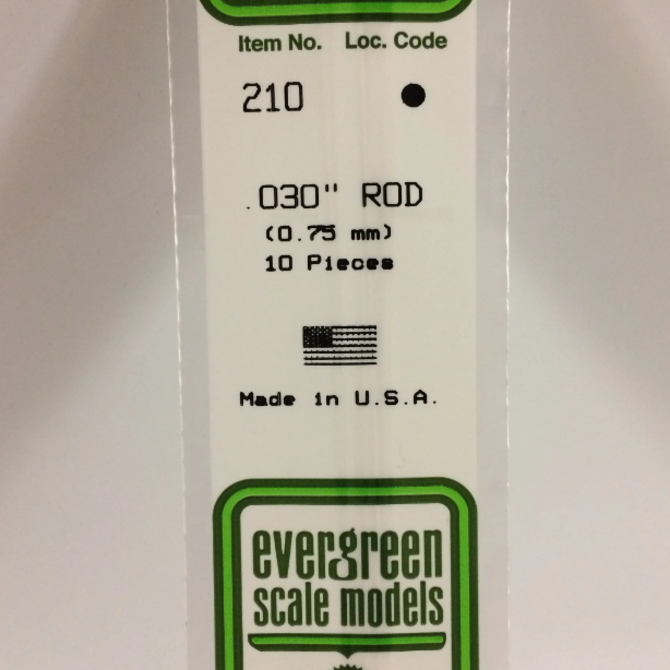 Evergreen Scale Models Evergreen 210 - .030" (.75MM) X 14" OPAQUE WHITE POLYSTRENE ROD (10) Pack