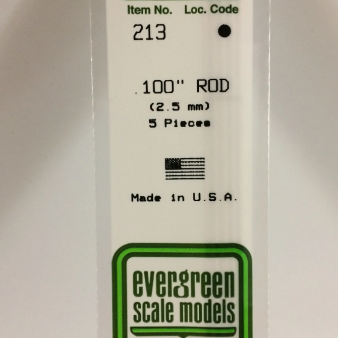 Evergreen Scale Models Evergreen 213 - .100" (2.5MM) X 14" OPAQUE WHITE POLYSTRENE ROD (5) Pack